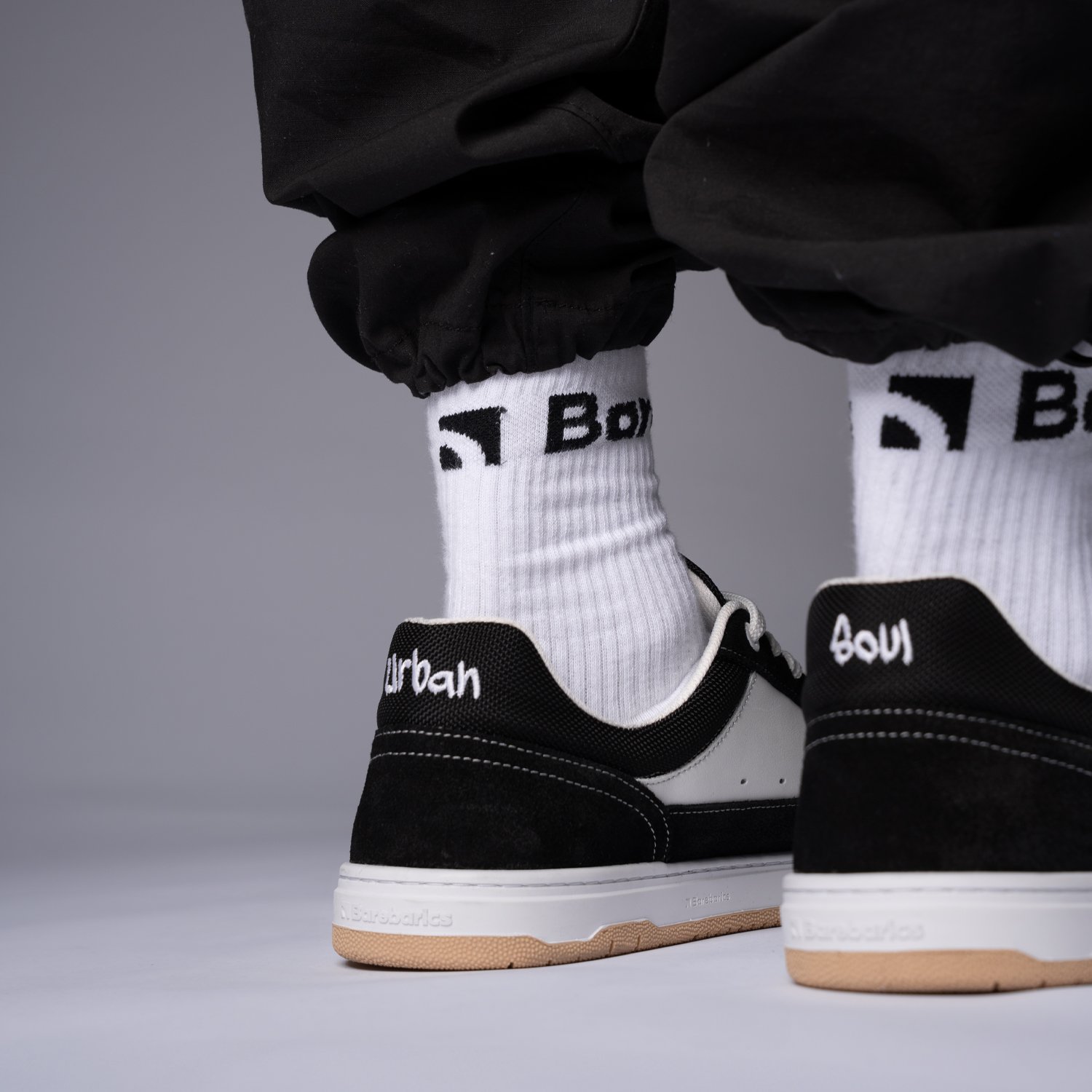 Meet the legends among barefoot sneakers! Barebarics Legend in Black & White are inspired by the relaxed world of skateboarding. We combined leather and textile for all those who want to wear sneakers all year round. We also added a bold embroidered Urban Soul detail and a stylish textile logo on the shoe tongue. Walk confidently. Feel the freedom. Let your Urban Soul shine.